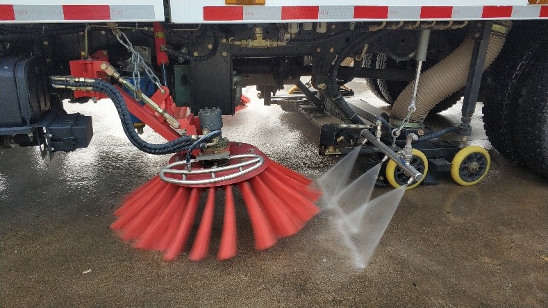![]() | 駕駛室后下方標配低壓前沖,由低壓水泵 產(chǎn)生的水流,可以像灑水車一樣對路面進行大 面積沖洗,沖洗寬度可達16米。 |